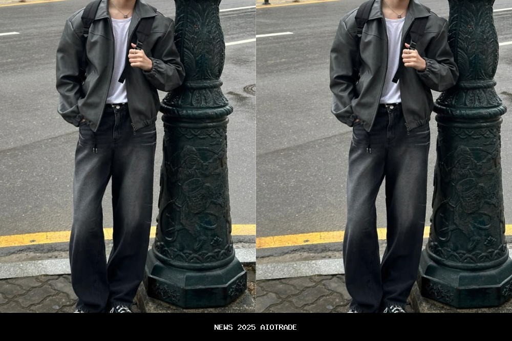 5. Tampilan streetwear gelap dengan jeans wide-leg yang keren