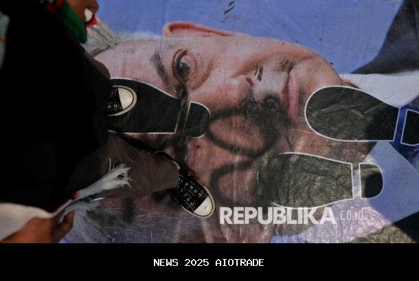 Poster bergambar PM Israel Benjamin Netanyahu terlihat diinjak massa peserta aksi solidaritas Indonesia Lawan Genosida, Dukung Palestina Merdeka di Jakarta, Ahad (12/10/2025). Massa aksi mengutuk segala bentuk genosida terhadap warga Gaza yang dilakukan Israel serta menyuarakan kemerdekaan dan gencatan senjata yang permanen di Palestina. - (Edwin Putranto/aiotrade)
