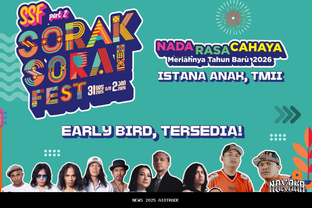 Sorak Sorai Fest adalah pilihan seru untuk merayakan tahun baru bersama keluarga. Festival ini akan menampilkan musisi lintas generasi seperti Slank, Barasuara, Vierratale, Tipe-X, NDX AKA, Souljah, Orkes Nunung CS, dan The Soulful. Acara ini akan berlangsung dari 31 Desember 2025 hingga 2 Januari 2026 di Istana Anak TMII. Selain menikmati musik, kamu juga bisa menikmati wahana dan hiburan interaktif di area TMII.