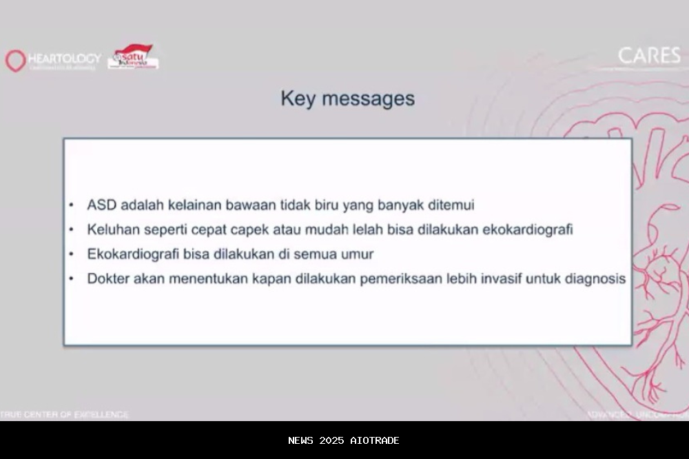 Penyakit jantung bawaan merupakan salah satu penyakit yang cukup banyak diderita di Indonesia dan sering kali terlambat dideteksi karena gejalanya kurang terlihat di awal kehidupan. Padahal, penyakit jantung bawaan yang tidak diobati dapat menyebabkan berbagai komplikasi. “Satu per 100 bayi di Asia lahir dengan penyakit jantung bawaan dan dari semua penyakit jantung bawaan, ternyata ASD secundum merupakan penyakit jantung tersering nomor dua setelah VSD (Ventricular Septal Defect),” kata Dokter Radityo dalam konferensi pers yang dilakukan secara daring, Kamis (11/12/25).