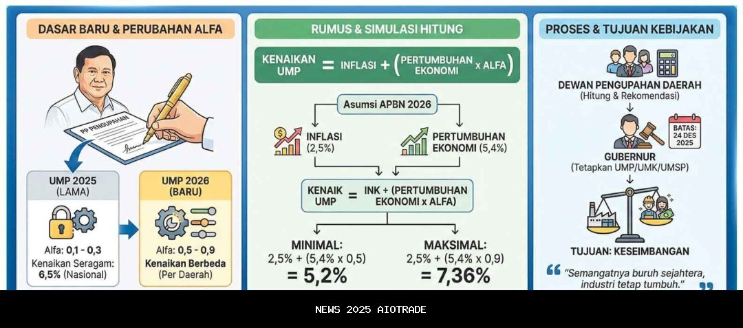 Dalam regulasi ini, Presiden Prabowo menetapkan formula kenaikan upah minimum sebagai berikut: Inflasi + (Pertumbuhan Ekonomi x Alfa)