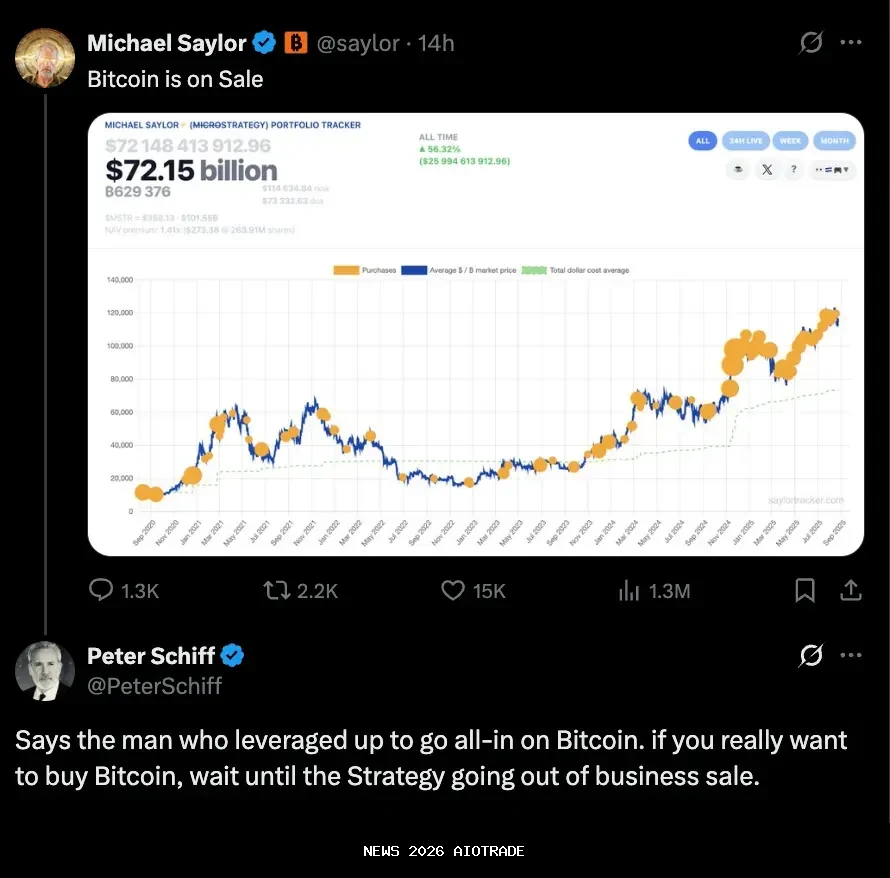 Dalam tanggapan terhadap pos Saylor di X yang menyatakan, "Bitcoin sedang diskon," Schiff berkata, "Berkata orang yang memperbesar pinjaman untuk bertaruh semua pada Bitcoin."