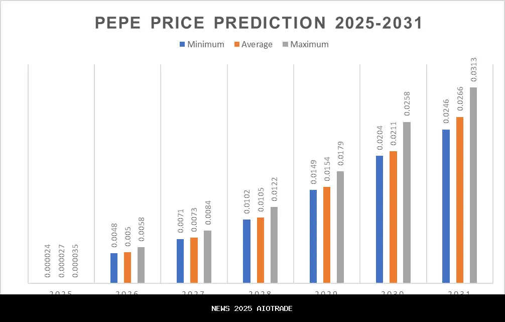 Pada 2031, harga terendah yang diprediksi untuk Pepe adalah $0,0246. Harganya mungkin mencapai maksimum $0,0313, dengan rata-rata harga yang diharapkan sekitar $0,0266.