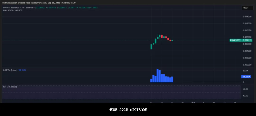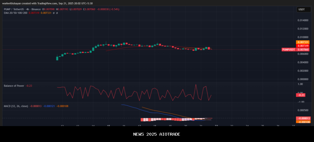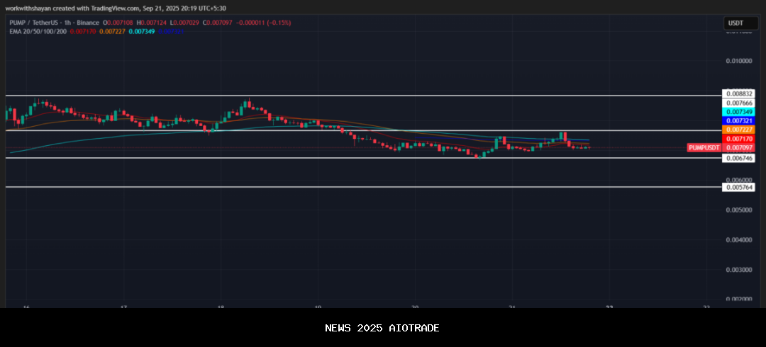 - Pada 20 September 2025, PUMP diperdagangkan pada $0,006971, sedikit turun dari puncaknya di pertengahan bulan tetapi masih bertahan jauh di atas rentang Agustusnya.