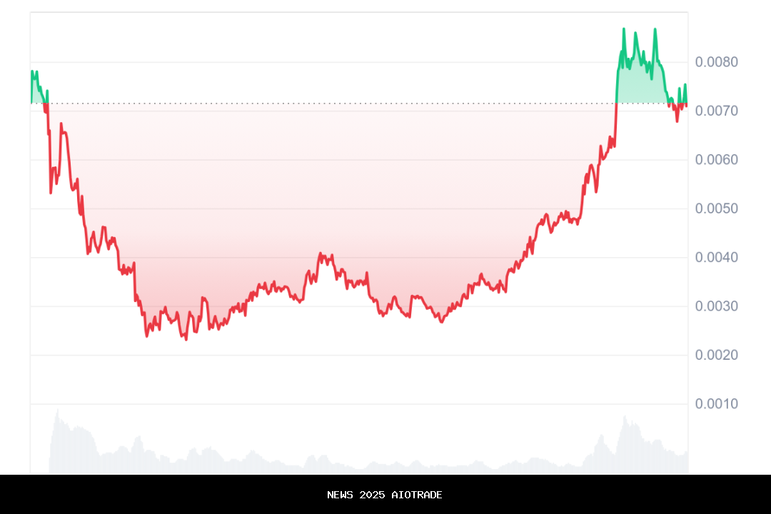 - PUMP memasuki pasar di pertengahan Juli 2025 dengan pergerakan harga yang tajam. Pada 13 Juli 2025, token tersebut diperdagangkan hingga mencapai $0,01013, menjadi salah satu lonjakan besar pertamanya. Namun, harga segera mengalami koreksi, menutup pada $0,007556.