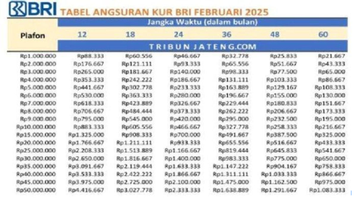 Tabel Angsuran KUR BRI 2025