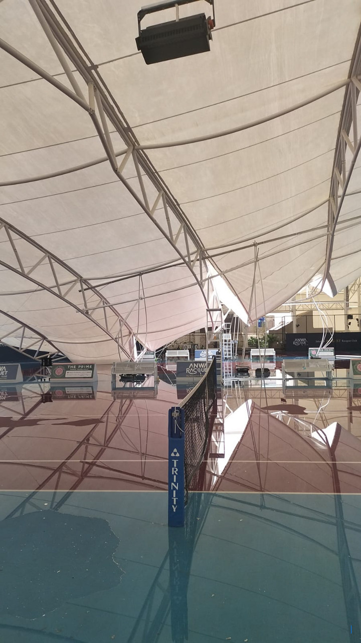 Atap yang ambruk menyebabkan kerusakan pada enam lapangan tenis. Selain itu, tiang penyangga juga terlempar ke lantai, sehingga membahayakan pengguna lapangan jika tidak segera ditangani. -