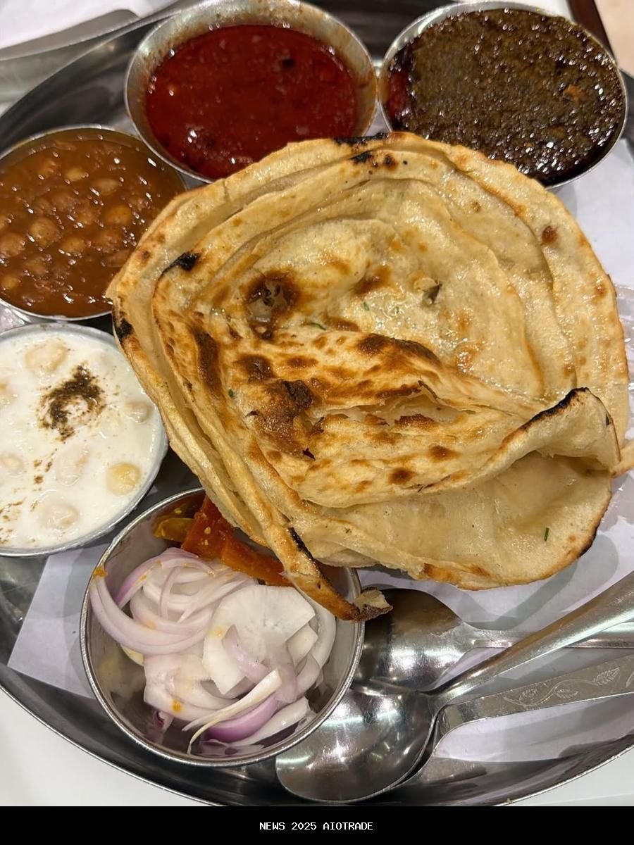 Arti tampak mencoba parotta yang dipadukan dengan dal serta lalapan berupa bawang merah.