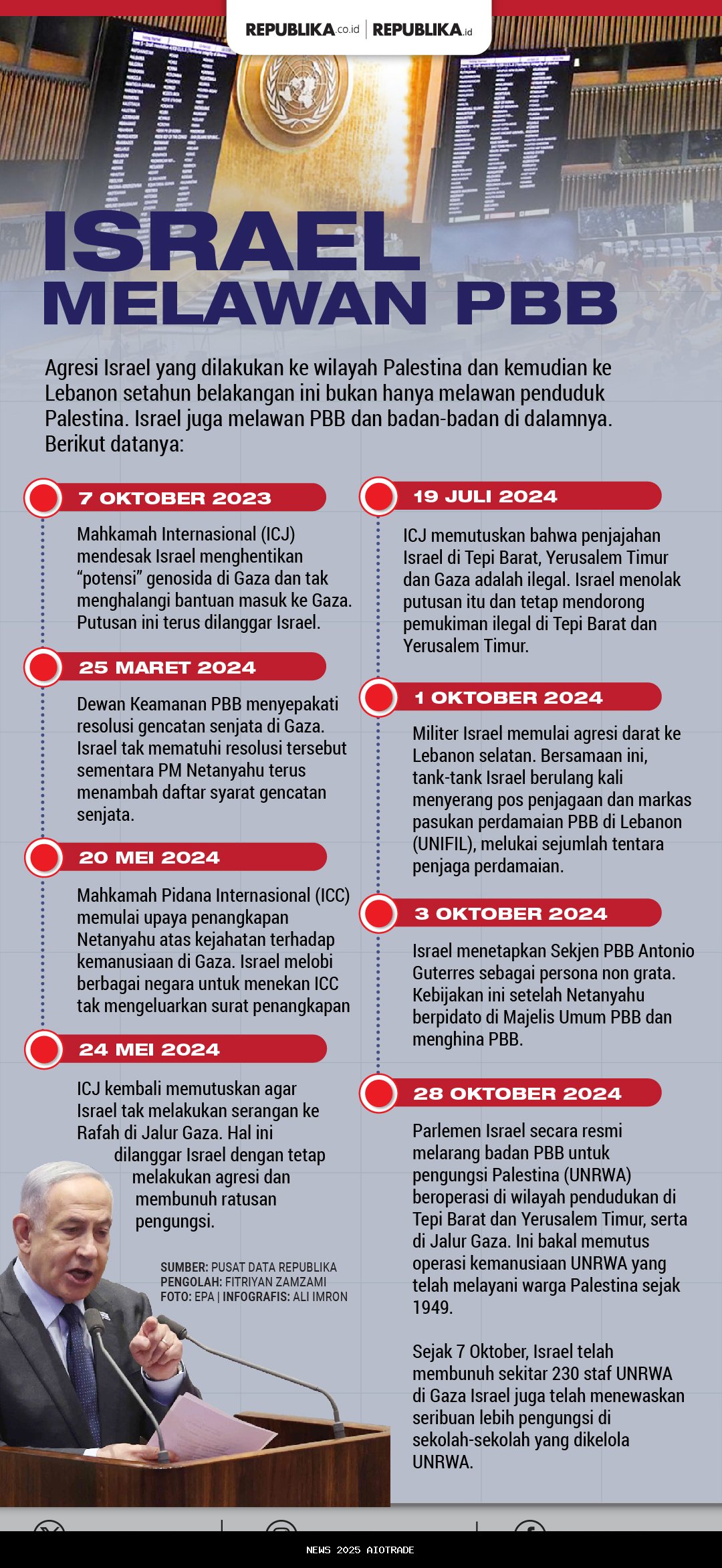 Pada November 2024, ICC mengeluarkan surat perintah penangkapan terhadap Perdana Menteri Israel Benjamin Netanyahu dan mantan Menteri Pertahanan Yoav Gallant. Surat perintah ini dikeluarkan atas dugaan keterlibatan mereka dalam kejahatan perang di Jalur Gaza. ICC menemukan dasar yang wajar untuk meyakini bahwa Netanyahu dan Gallant bertanggung jawab atas tindakan kejahatan perang dalam bentuk "memanfaatkan kelaparan sebagai metode peperangan dan kejahatan terhadap kemanusiaan".